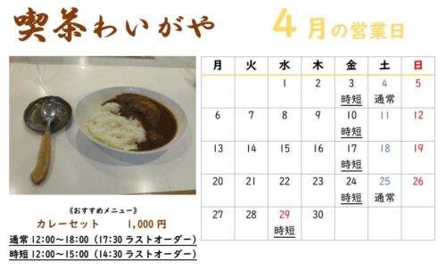 • 遅くなりましたが、4月の営業日程は以下の通りです!